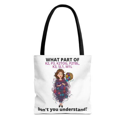 Knitting Enthusiast Tote Bag - "What Part of K2, P3, K2TOG, P2BL, K3, SL1, M1L Don't You Understand?"